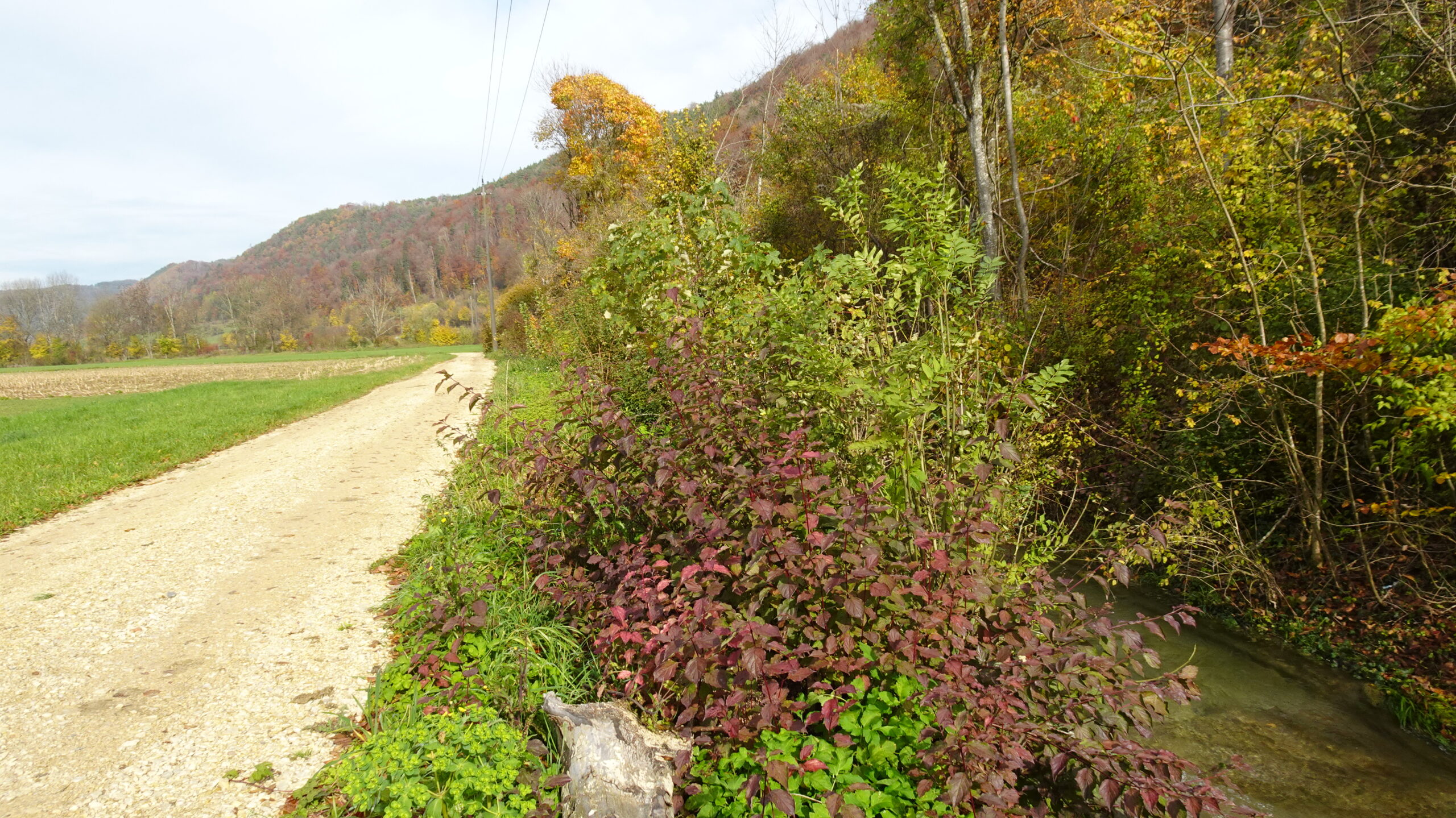 Heute wandere ich auf Feldwegen entlang der Durach durchs Merishuusertal.